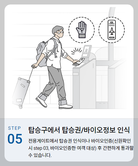 생체 인식 시스템을 통해 신원을 확인하기 때문에, 별도의 신분증이나 탑승권을 제시할 필요가 없습니다. 이는 여행 중 불편함을 최소화하는 데 기여합니다.