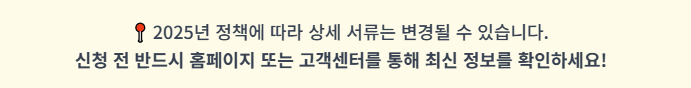 2025년 정책에 따라 필요 서류는 변경될 수 있지만, 일반적으로는 다음과 같은 서류들이 요구됩니다.