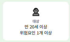 일반형 지원금을 신청하시는 분들은 다음 건강위험요인 중 1개 이상을 보유하고 계셔야 합니다.