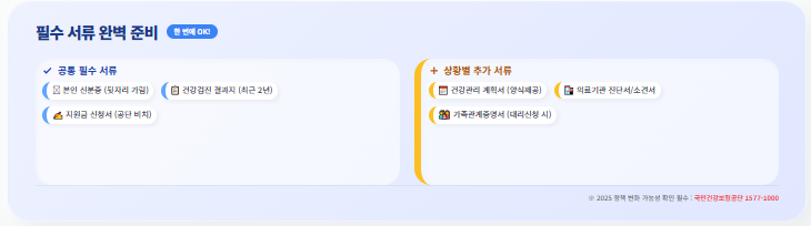 2025년 정책 변화에 따른 추가 서류가 발생할 수 있으니, 신청 전에 국민건강보험공단 공식 홈페이지나 고객센터(1577-1000)를 통해 반드시 최신 정보를 확인하세요!