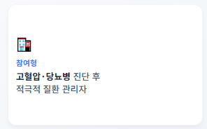 - **참여형:** 고혈압, 당뇨병 등 만성질환을 진단받고 적극적으로 질환 관리에 참여하는 분