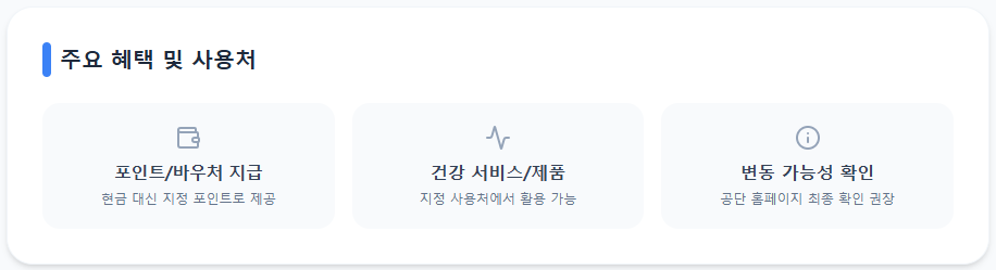- 참여형 (만성질환자): 연 최대 8만 원 상당의 포인트 또는 바우처 지급