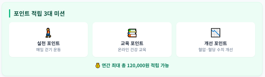 - 📉 개선 포인트: 혈압·혈당 등 수치 개선 시 지급되는 보너스