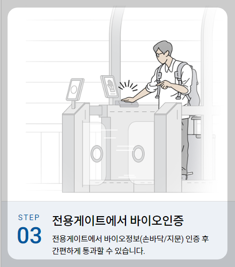 생체 인식 시스템을 통해 신원을 확인하기 때문에, 별도의 신분증이나 탑승권을 제시할 필요가 없습니다. 이는 여행 중 불편함을 최소화하는 데 기여합니다.