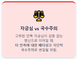 역사는 민족의 정체성을 형성하는 중요한 요소이지만, 이를 다루는 방식에 따라 그 영향은 긍정적일 수도, 부정적일 수도 있음을 보여주는 사례입니다.