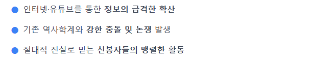 - 주류 역사학계의 비판적 태도 비난: 주류 역사학계가 지나치게 보수적이며, 새로운 사료와 주장을 검토하기보다는 맹목적으로 배척하고 있다고 비판합니다. 심지어 일부 학자들이 '식민사관'의 틀에서 벗어나지 못하고 있다고 공격하기도 합니다.