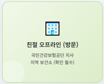 - **국민건강보험공단 홈페이지:** 공인인증서로 로그인 후 쉽고 빠르게 신청 가능합니다.