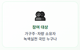 - ✅ 참여 대상: 일반 가정의 가구주, 자동차 소유자, 녹색생활 실천 국민 누구나