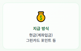 - ✅ 지급 방식: 현금(계좌입금), 그린카드 포인트 등 선택 가능