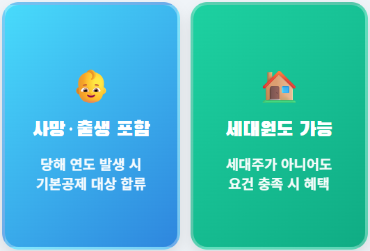 - **연도 중 사망/출생**: 과세 기간 중에 사망한 부양가족이나 출생한 자녀도 그 해에는 기본공제 대상자로 포함됩니다.
