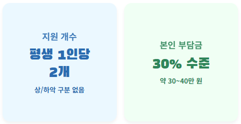 - ✔️ 지원 개수: 평생 1인당 2개 (상/하악 구분 없음)