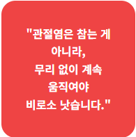 "관절염은 참는 병이 아니라, 무리가 가지 않는 방법으로 계속 움직여야 낫는 병입니다."