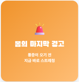 "통증은 몸이 보내는 마지막 경고입니다. 더 늦기 전에 오늘 알려드린 스트레칭을 시작하세요."