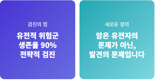 "암은 유전자의 문제가 아니라, 발견 시점의 문제입니다."