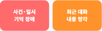 - 치매: 사건 전체를 잊음, 힌트를 줘도 모름, 성격 변화 및 판단력 저하 동반.