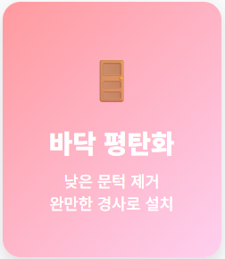 - 문턱: 작은 문턱도 발이 걸리는 원인이 됩니다. 경사로를 설치하거나 아예 제거하여 평탄하게 만드는 것이 좋습니다.