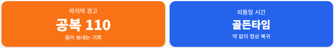 110이라는 숫자는 우리 몸이 보내는 마지막 기회입니다. 지금 식단과 운동을 병행하면 약 없이도 다시 정상(100 미만)으로 돌아갈 수 있습니다.