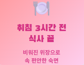 - 취침 3시간 전 식사 완료: 위장이 비워진 상태에서 잠드는 것이 가장 이상적입니다.