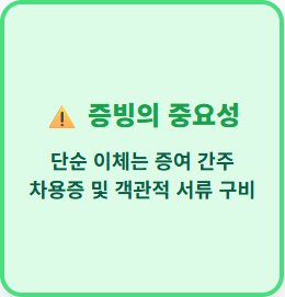 ✔️ 가족 간 차용(금전소비대차): 증여세가 부담된다면 적정 이율(연 4.6%)을 설정하여 차용증을 작성하고 실제로 이자를 송금하는 기록을 남겨야 합니다.