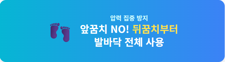- ✅ 발바닥 전체 사용: 뒤꿈치부터 땅에 닿게 하여 발바닥 전체로 체중을 분산시켜야 합니다. 앞꿈치로만 지탱하면 무릎 앞쪽 슬개골에 과도한 압력이 집중됩니다.