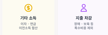 - 기타 소득: 이자소득, 연금소득, 이전소득(자녀가 주는 용돈 등) 합산