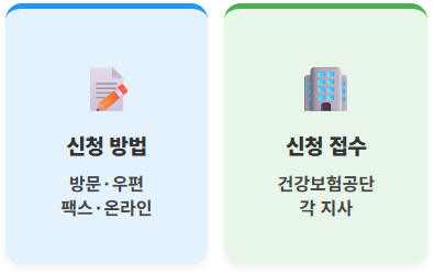 - 신청: 국민건강보험공단 지사 방문, 우편, 팩스 또는 홈페이지