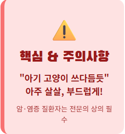 ※ 주의사항: 암 환자나 심한 염증 질환이 있는 경우 반드시 주치의와 상의 후 시행해야 합니다.