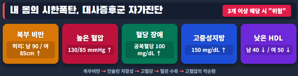 다음 5가지 항목 중 3가지 이상에 해당한다면 당신은 이미 대사증후군 환자입니다.
