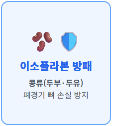 여성호르몬과 유사한 구조의 이소플라본은 폐경기 이후 여성의 뼈 손실을 막아주는 든든한 지원군입니다.