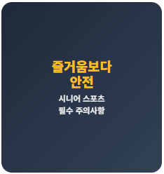 국민체육진흥공단에서는 시니어 스포츠 활동 시 다음 사항을 반드시 지킬 것을 당부합니다.