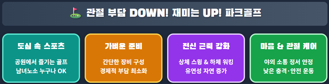"건강한 노후는 적극적인 움직임에서 시작됩니다. 오늘 파크골프장에서 새로운 인연과 활력을 찾아보세요!"