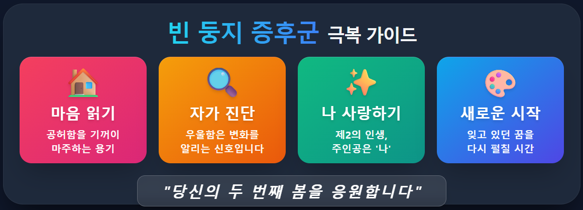 공허함을 채우기 위해서는 관심의 대상을 '자녀'에서 **'나 자신'**으로 옮겨야 합니다.