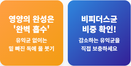 시니어 영양의 시작은 '흡수'입니다. 장 내 유익균이 부족하면 아무리 좋은 보약을 먹어도 밑 빠진 독에 물 붓기가 됩니다.