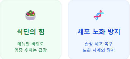 침묵의 살인마라 불리는 만성 염증. 식단만 바꿔도 혈관과 세포의 노화를 대폭 늦출 수 있습니다.