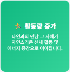- 활동량 증가: 사람을 만나러 나가는 행위 자체가 신체 활동으로 이어집니다.