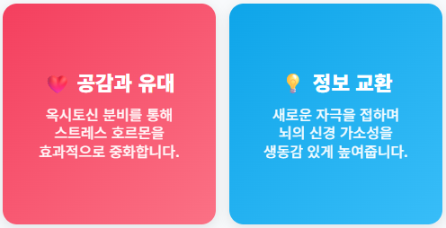 - 공감과 유대: 옥시토신 분비로 스트레스 호르몬을 중화시킵니다.