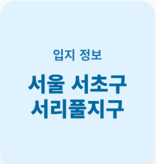 서리풀지구는 서초구의 원지동, 신원동, 염곡동, 내곡동 일대를 포함하고 있습니다. 이곳은 입지 면에서 타의 추종을 불허하는 몇 가지 강점을 가지고 있습니다.
