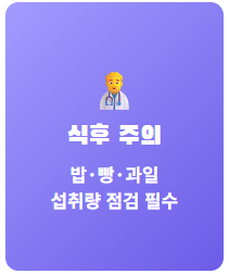 과일은 하루에 사과 반 쪽, 종이컵 한 컵 분량의 딸기 정도로 제한해야 합니다. 주스보다는 생과일을 씹어 드시는 것이 식이섬유 섭취를 도와 흡수 속도를 늦춥니다. - ② 단순 당과 정제 탄수화물 절제